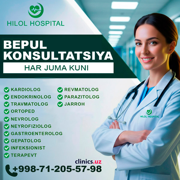 BEPUL KONSULTATSIYA malakali shifokorlardan — har juma kuni Hilol Hospital klinikasida!