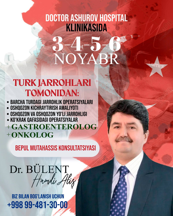 BEPUL konsultatsiya Turkiyadan kelgan yetakchi mutaxassislardan Doctor Ashurov Hospitalda!